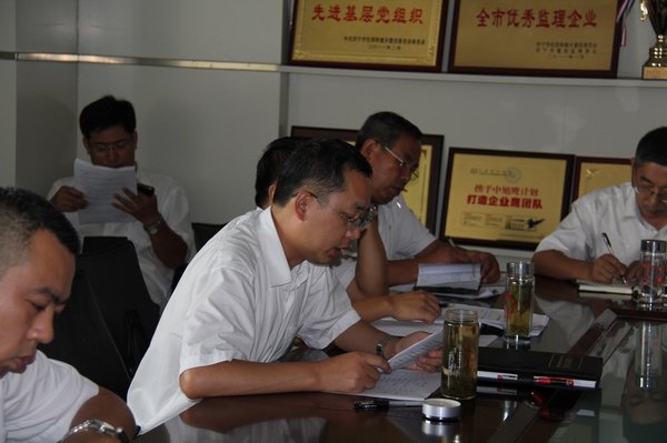 九月三日,我公司2011年度上半年安全與質(zhì)量會(huì)議在公司會(huì)議室召開??偣まk主任李樹玉結(jié)合上半年工地檢查的情況,通報(bào)了目前在建工程質(zhì)量與安全方面存在的問題及下一步需要項(xiàng)目部注意的事項(xiàng)。公司領(lǐng)導(dǎo)韓經(jīng)理向各總監(jiān)介紹了公司新的考核計(jì)分辦法,杜經(jīng)理對(duì)目前財(cái)務(wù)情況作了通報(bào)。分公司解西民經(jīng)理及經(jīng)營部徐雁主任分別代表分公司、公司各部門作了發(fā)言。公司領(lǐng)導(dǎo)對(duì)獲得“綜合管理優(yōu)秀獎(jiǎng)”的杜偉項(xiàng)目部頒發(fā)獎(jiǎng)牌及獎(jiǎng)金。杜偉總監(jiān)對(duì)項(xiàng)目部管理談了自己的心得體會(huì)。