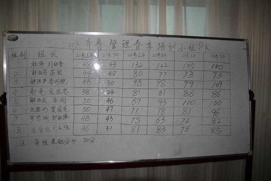 2月21日至23日,我公司在中區(qū)招待所成功舉辦了2013年春季培訓(xùn)班。公司特邀了山東建筑大學(xué)劉發(fā)東教授、濟寧職業(yè)技術(shù)學(xué)院楊文啟教授來為員工培訓(xùn)企業(yè)安全文化及溝通藝術(shù)。韓曉東經(jīng)理及總工辦李樹玉主任分別為全體員工培訓(xùn)了現(xiàn)場監(jiān)理專業(yè)知識、卓越績效評價準(zhǔn)則。本次培訓(xùn)采取分組對抗組長負責(zé)制,不僅保證了現(xiàn)場培訓(xùn)的順利進行,而且使培訓(xùn)效果大大提升,得到了廣大職工及領(lǐng)導(dǎo)的高度評價。