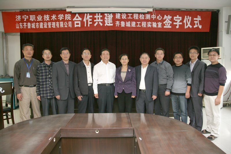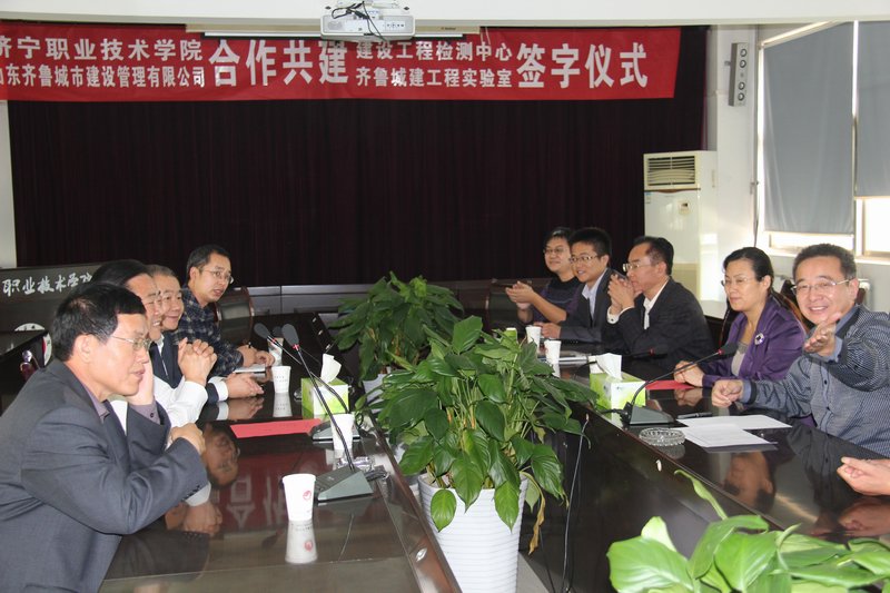 10月12日,我公司與濟(jì)寧職業(yè)技術(shù)學(xué)院建設(shè)工程檢測試驗(yàn)室項(xiàng)目簽約儀式在職業(yè)技術(shù)學(xué)院隆重舉行。出席簽約儀式的領(lǐng)導(dǎo)有王華董事長、韓曉東經(jīng)理、華寧檢測公司徐志太經(jīng)理、總工辦李樹玉主任,濟(jì)寧職業(yè)技術(shù)學(xué)院孫院長、建筑系楊文啟主任等學(xué)院領(lǐng)導(dǎo)。會(huì)議由楊文啟主任主持,孫院長對(duì)我公司的到訪表示歡迎,對(duì)試驗(yàn)室項(xiàng)目的順利簽約表示祝賀。王華董事長介紹了山東齊魯城市建設(shè)管理有限公司的基本情況,總結(jié)了兩家單位的合作歷程,同時(shí)對(duì)于兩家單位的合作前景寄予厚望。隨后簽字儀式正式開始,由王華董事長、孫院長兩位領(lǐng)導(dǎo)正式簽署校企共辦建設(shè)工程試驗(yàn)室協(xié)議。