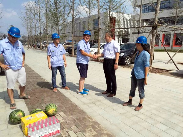 近日來,驕陽(yáng)似火,持續(xù)高溫。7月13日至7月18日上午,山東齊魯城市建設(shè)管理有限公司開展了“以人為本、關(guān)愛職工、夏送清涼”活動(dòng),公司杜紹坤副總經(jīng)理和趙德沖主任代表公司頂著烈日趕赴工地現(xiàn)場(chǎng),為一線員工送去絲絲清涼。對(duì)堅(jiān)守崗位、辛勤工作的一線員工表示親切的慰問,并送上西瓜、飲料和水。每到一個(gè)工地都與員工們親切交流,仔細(xì)詢問監(jiān)理部的工作環(huán)境和員工身體狀況,叮囑他們要注意身體、注意夏季安全生產(chǎn),要?jiǎng)谝萁Y(jié)合,做好高溫防護(hù)。