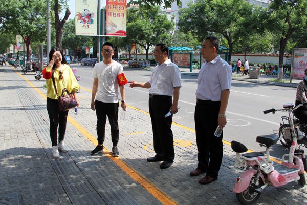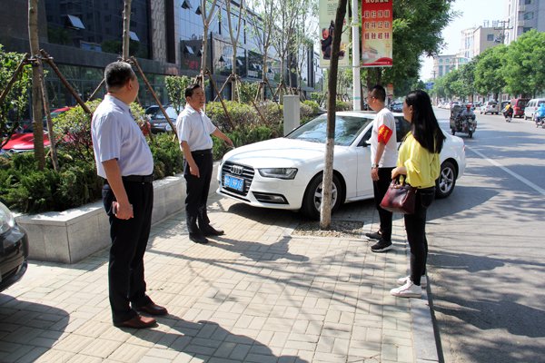 我公司自5月8日起安排科苑路自洸河路至金宇路路段執(zhí)勤工作,每天安排兩名值班人員對路段進行巡視督查,執(zhí)勤人員嚴格按照上崗時間到達指定地點。巡視、記錄內容主要有:包保路段是否有集中宣傳展示精神文明創(chuàng)建內容的宣傳欄;沿街商鋪是否用電子顯示屏展示社會主義核心價值觀;機動車、非機動車是否逆行、占用人行道行駛;非機動車是否占用公共道路、盲道等現象;沿街商鋪是否出現亂潑污水、亂扔垃圾、超門頭經營行為;主動將亂停亂放的電動車、自行車整齊擺放到規(guī)定停車區(qū)內。烈日炎炎、驕陽似火,火毒的太陽炙烤著執(zhí)勤人員的身影,盡管如此高溫的天氣,我們的工作人員依舊停不下巡視的腳步,他們在千米的路段來回穿梭,認真記錄、上傳檢查中出現的問題,耐心與商鋪店主進行溝通,與車主協(xié)調。