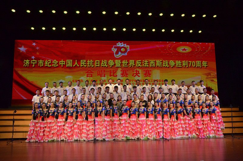 在全國上下隆重紀念抗日戰(zhàn)爭勝利70周年活動之際,8月30日下午,由中共濟寧市委宣傳部、市直機關工委、市文廣新局、市文聯等單位聯合在聲遠舞臺舉辦了濟寧市紀念中國人民抗日戰(zhàn)爭勝利暨世界反法西斯戰(zhàn)爭勝利70周年合唱比賽,以此弘揚愛國主義的優(yōu)秀傳統,培養(yǎng)全市廣大干部職工愛黨愛國的偉大情懷。市有關領導出席本次活動。此次合唱比賽以系統為單位,共分16個方隊,每個方隊身著統一服裝,用最具特色的方式歌唱祖國,緬懷歷史,一曲曲激情飛揚、氣勢磅礴的經典紅歌,讓廣大職工再次感受到了革命先輩們沖鋒陷陣的豪情和一腔愛國情,贏得了現場觀眾陣陣掌聲。