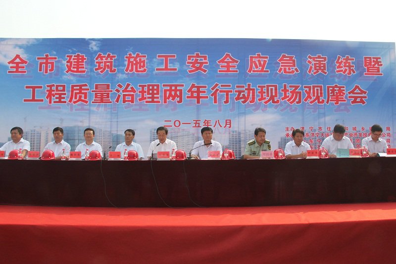 8月28日上午,濟(jì)寧市建筑施工安全應(yīng)急演練暨工程質(zhì)量治理兩年行動(dòng)觀摩會(huì),在我公司在監(jiān)的大運(yùn)河河?xùn)|片區(qū)回遷安置工程項(xiàng)目施工現(xiàn)場(chǎng)召開(kāi),來(lái)自十四縣市區(qū)的建筑施工安全、質(zhì)量工作者近三百人出席。與會(huì)人員觀看了事故應(yīng)急模擬演練,參觀了樣板展示區(qū)及施工現(xiàn)場(chǎng),市分管領(lǐng)導(dǎo)及市住建委領(lǐng)導(dǎo)出席并始終陪同觀察。