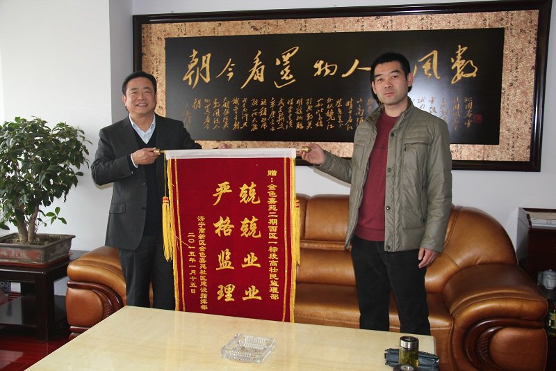 元月15日,高新區(qū)金色嘉苑二期項(xiàng)目指揮部賈主任、夏主任、劉主任一行三人來(lái)到我公司,為我公司送來(lái)一面印有“兢兢業(yè)業(yè)、嚴(yán)格監(jiān)理”的錦旗,以表彰我公司駐金色嘉苑二期高壯民項(xiàng)目監(jiān)理部對(duì)本工程高度負(fù)責(zé)、嚴(yán)格監(jiān)理的工作態(tài)度。王華董事長(zhǎng)親自接待了賈主任一行,表示能得到指揮部領(lǐng)導(dǎo)的肯定是對(duì)我們公司監(jiān)理人員工作上的高度評(píng)價(jià),今后監(jiān)理部人員將以更加飽滿的熱情投入到工程后期的工作中。