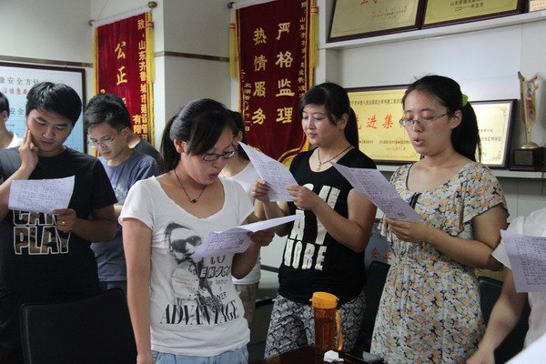 為慶祝建國六十五周年,市住建委正組織一場生動活潑的歌詠比賽。我公司及時響應(yīng)組織青年愛好者50余人迅速參與其中,聘請青年歌唱家曾翠萍女士前來指導(dǎo)練唱。演唱曲目《美麗中國進行曲》、《共筑中國夢》。