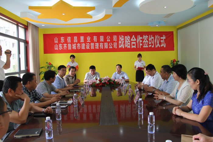 7月25日上午,齊魯管理公司與山東信昌置業(yè)有限公司戰(zhàn)略合作簽字儀式在太白湖新區(qū)信昌置業(yè)辦公所在地莊重?zé)崃业臍夥罩信e行。