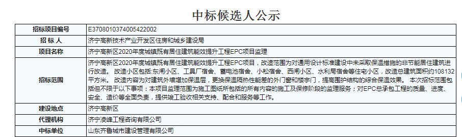 祝賀我公司濟(jì)寧高新區(qū)2020年度城鎮(zhèn)既有居住建筑能效提升工程EPC項目監(jiān)理中標(biāo)